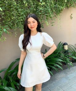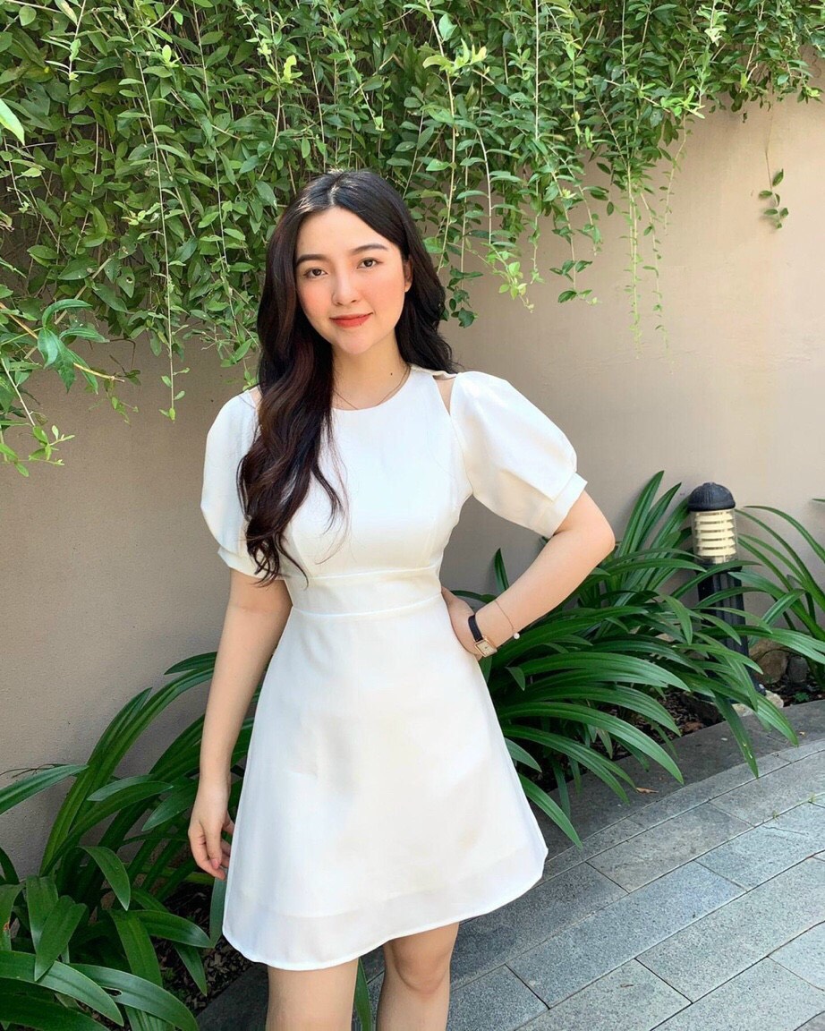 - Đầm với form chữ A cùng tone trắng chị em diện đi làm, đi chơi hay đi tiệc đều được.