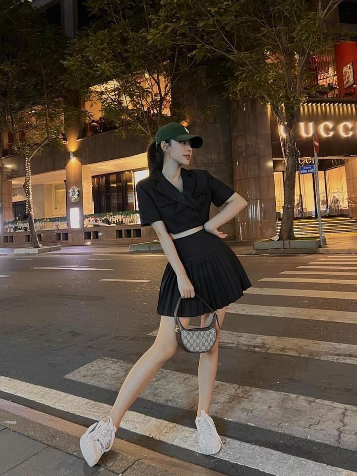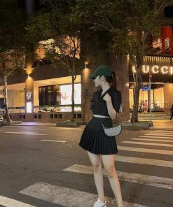 Đừng ngần ngại khi diện lên một set áo sơ mi cổ vest croptop mix với chân vấy xếp ly trông thật cá tính , năng động . Nỗi bật với vẻ ngoài sành điệu cùng kiểu dáng thu hút giúp tôn dáng và khéo léo khoe trọn vòng 2 thon gọn.