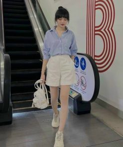 Với những cô nàng yêu thích sự năng động , trẻ trung thì set áo sơ mi sọc mix short kaki trắng đang được ưa chuộng trên thị trường hiện nay . Đây là cách mix mang đến sự nhẹ nhàng , thoải mái và đặc biệt rất cá tính.